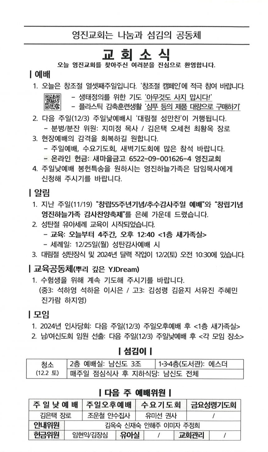 Á¦¸ñ 20231126 ÁÖº¸ À̸§ ¿µÁø±³È¸ (yjpc)